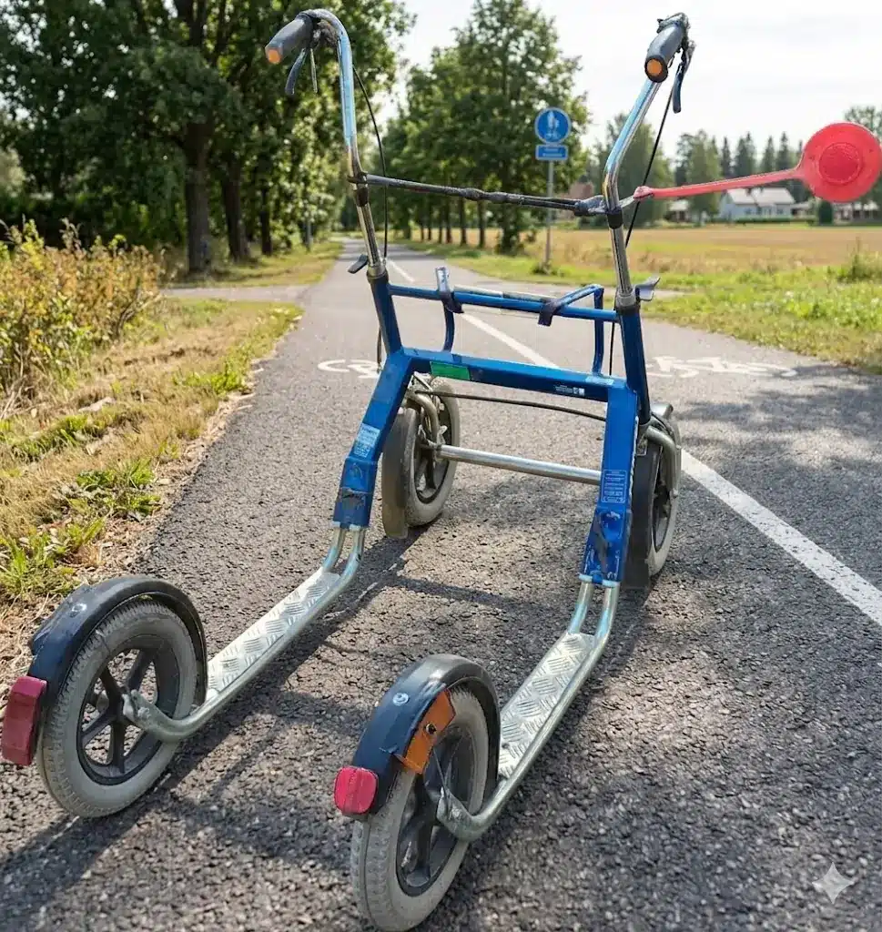 SivustovastaavaSain perinnöksi potkupelin. Se on kuin nelipyöräinen potkulauta. Olen sen kanssa antanut liikuntaa eräälle huskylle. Huomasin, että se on itsellenikin hyvä kuntoiluväline ja liikun sen kanssa ilman koiraakin.
