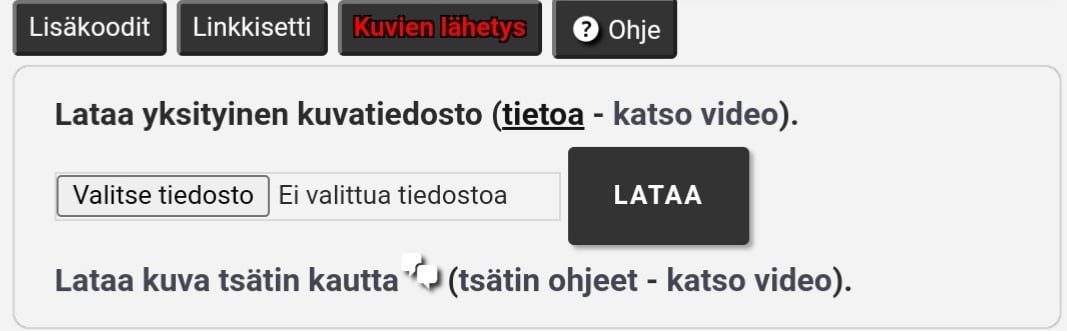 Kyseessä on itsenäinen, upotettu toiminto. Kun kuva on valittu, pitää painaa LATAA-painiketta. LÄHETÄ-painike ei liity kuvien lähetykseen vaan uuden kommentin lähettämiseen!